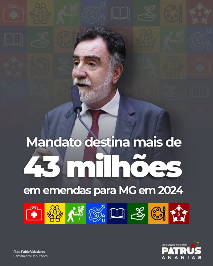 Este ano o mandato do deputado federal Patrus Ananias está destinando mais de R$ 47 milhões em emendas parlamentares para MG.